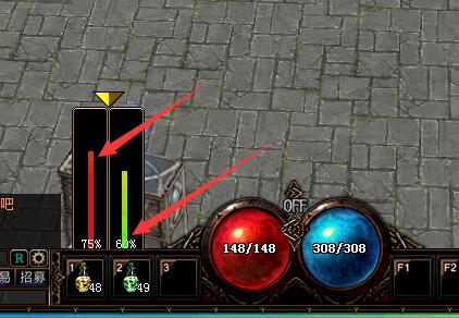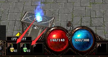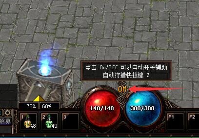 游戏中添加了自助恢复HP、MP系统,将HP、MP药水放到快捷栏中点击黄色的箭头选定HP和MP下降到一定的百分比后使用,将OFF开关点击到ON状态就可以了,在升级打怪途中,HP和MP下降到设定的数值时就会自动进行吃药补充到数值以上后停止,需要关闭时将开关点击到OFF状态即可!