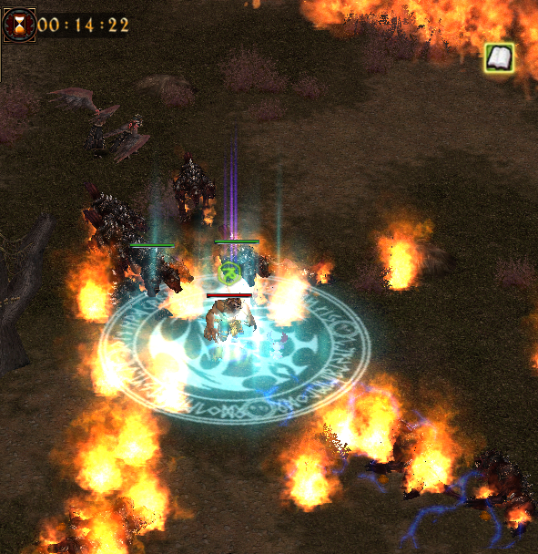 恶魔之地战开始后,人物会被传送到地图中随机的位置,每隔一段时间就会出现一大批怪,并且怪会被火线圈着,怪的伤害并不大,但千万不能碰到火线,会被烧死的,每隔一段时间火线圈会向里缩小。