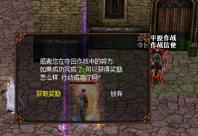 恶魔之地作战结束之后,人物会被传送回恶魔之城,然后大家记得要找到“恶魔平原作战信使”领取奖励。
